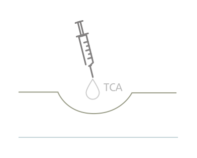 TCA라는 화학물질을 흉터의 밑바닥에서 점을 찍듯이 발라 부분적인 박피를 하며, 이런 재생 과정을 통해 흉터 재생을 도와주는 방법입니다.