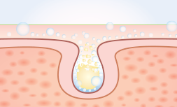 표피층의 묵은 각질을 제거하여 모공을 열어 여드름 염증을 가라앉힙니다.