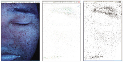 일반광을 통한 얼굴 촬영으로 모공과 주름을 확인할 수 있습니다.
