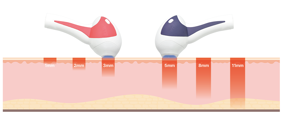 - 3단계 깊이 조절로 피부 타입에 맞춰 정확한 깊이에 에너지를 전달하며 40.68MHz RF를 최대 20mm까지 전달
