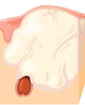피부 속에 염증이 굳어 단단한 형태가 됩니다.