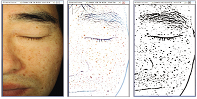 일반광을 통한 얼굴 촬영으로 모공과 주름을 확인할 수 있습니다.