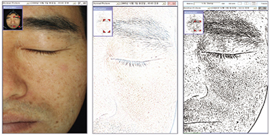 일반광을 통한 얼굴 촬영으로 모공과 주름을 확인할 수 있습니다.