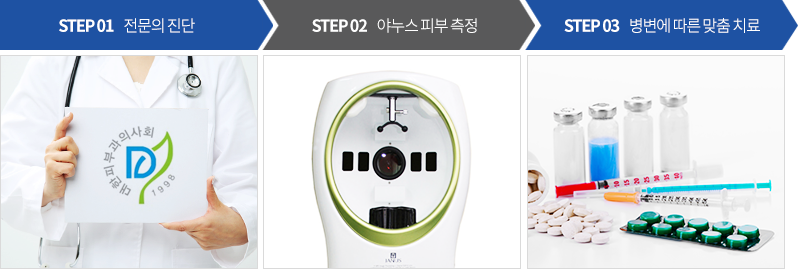 다양한 병변을 피부과 전문의의 노하우와 경험, 실력을 통해 야누스 피부진단 시스템으로 정확하게 구별해내는 것이 색소 치료의 첫걸음입니다.